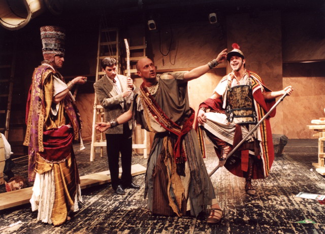 Несмотря на приверженность линии реалистического психологизма в репертуаре, руководство театра не избегает экспериментов в более смелых авангардных постановках. Модернистский и насмешливый «Бог» из «Под крыши» Виктора Шамирова по пьесе Вуди Аллена – тому стопроцентное подтверждение. Этот спектакль стал театральным хитом – интеллектуальным, метким и остроумным. Спектакль очаровывает и захватывает с первых слов, первых реплик. Выбрана удивительная форма - «театр в театре» или «театр о театре». На сцене двое не слишком удачливых, не слишком талантливых «творцов» - Режиссер (постановщик спектакля Виктор Шамиров) и Актер (Гоша Куценко). Они ставят пьесу про древних греков, «фестивальную вещь» и очень хотят получить заветную премию. Пересказать, все, что творят Шамиров и компания, невозможно. Кажется, что на сцене царит полная импровизация. Остроумные диалоги перескакивают с искусства на политику, с Древней Греции на современную жизнь. Трагичное и комичное идут рядом так тесно, что не замечаешь, как одно перетекает в другое.