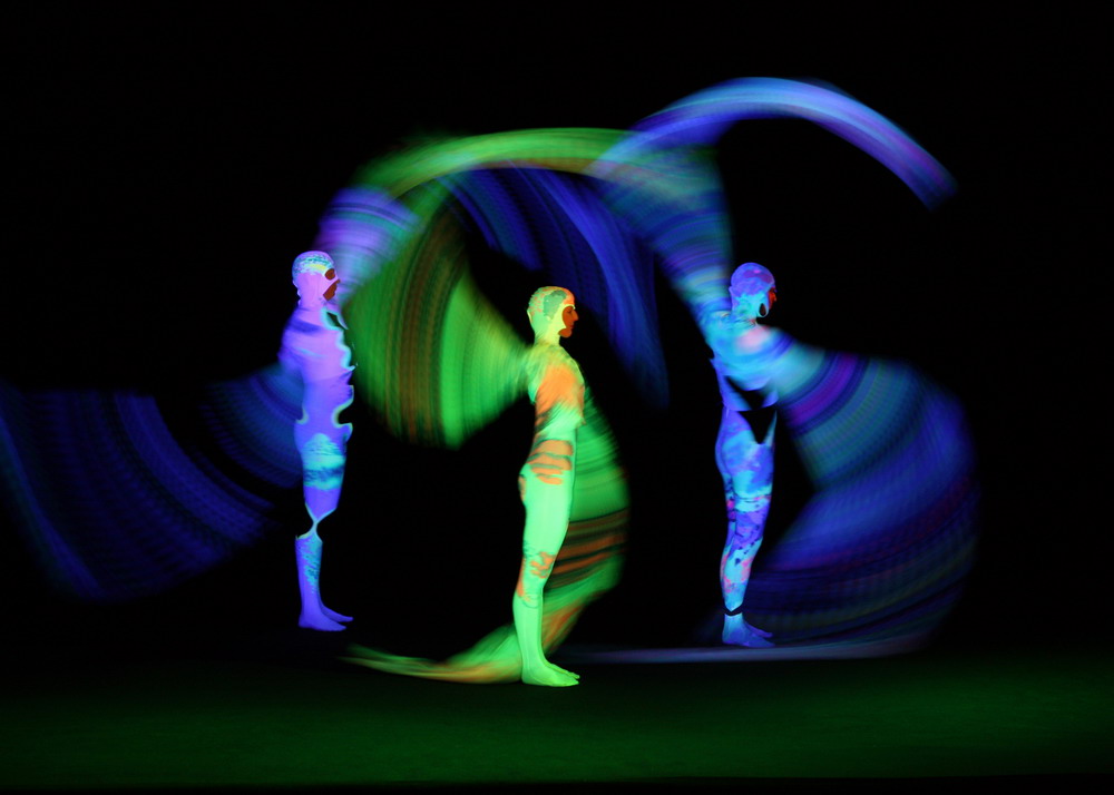 Игра света и тени может быть как понятием философским, так и театральным, сценическим. А если философию игры принести на сцену, расцветить ее всеми красками и спроецировать на экран ослепительно черного цвета. Черная сцена, актеры в черных костюмах, "оживающий" реквизит. Здесь нет слов, есть лишь музыка, пантомима и актерская пластика.